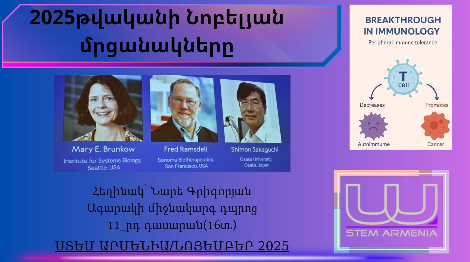 Ներկայացրեք գիտական հայտնագործություններից մեկը, որը 2025-ին արժանացավ Նոբելյան մրցանակի հետևյալ կատեգորիաներում՝ ֆիզիկա, քիմիա կամ ֆիզիոլոգիա/բժշկություն։