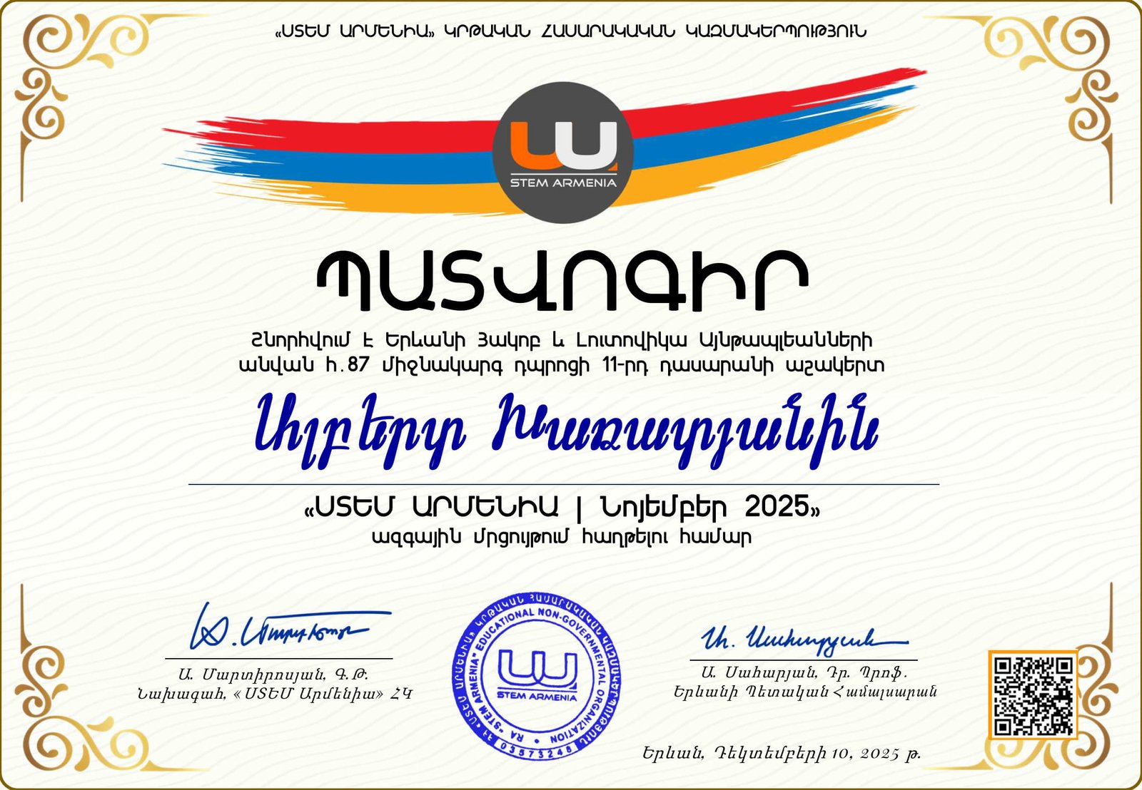 «ՍՏԵՄ ԱՐՄԵՆԻԱ | Նոյեմբեր 2025» Մրցույթի Արդյունքները