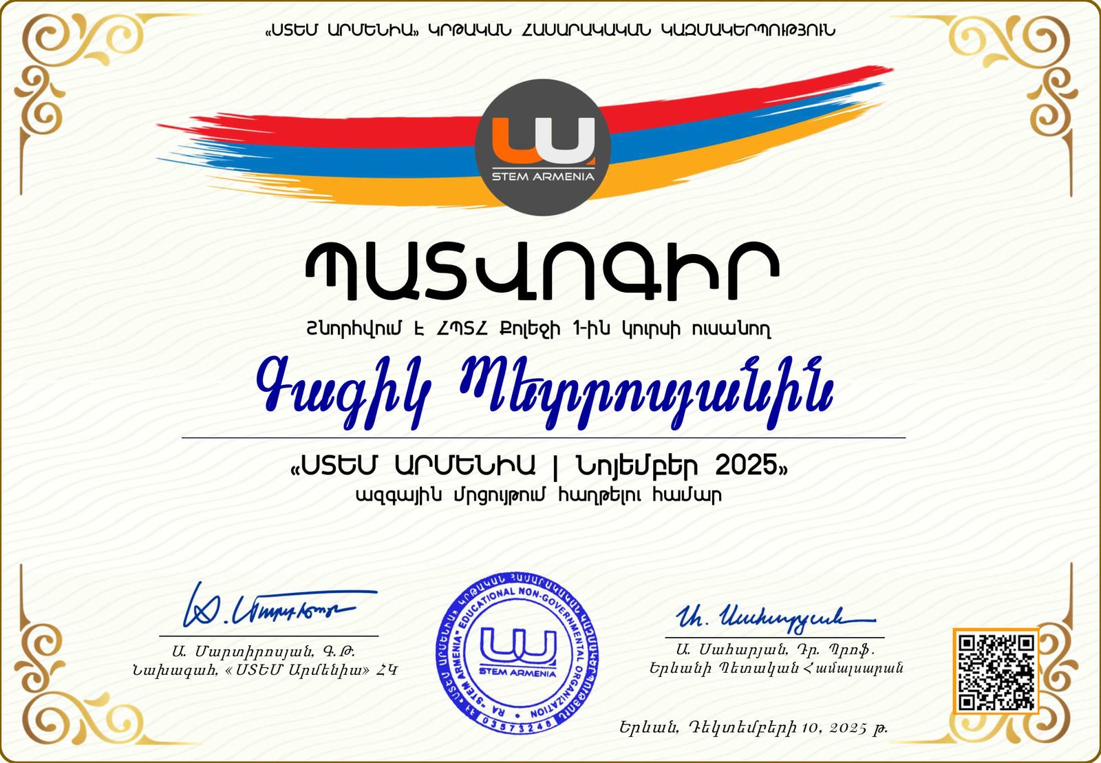 «ՍՏԵՄ ԱՐՄԵՆԻԱ | Նոյեմբեր 2025» Մրցույթ | 1-ին Փուլի Հաղթողները